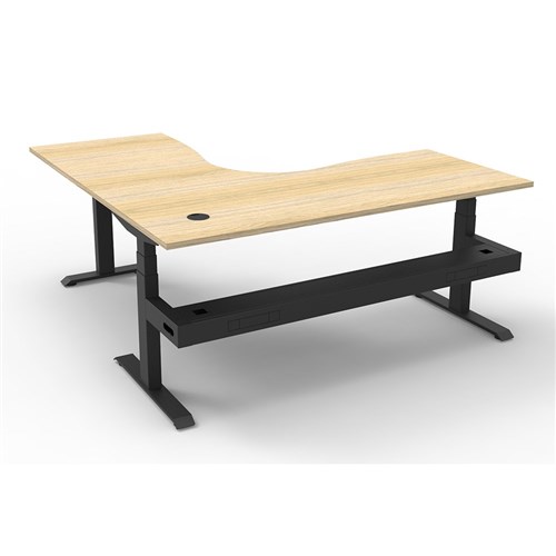 Natural Oak top Black frame. Includes cable tray.