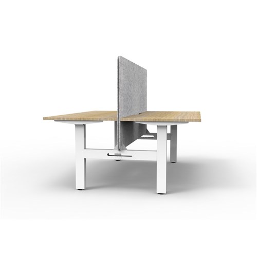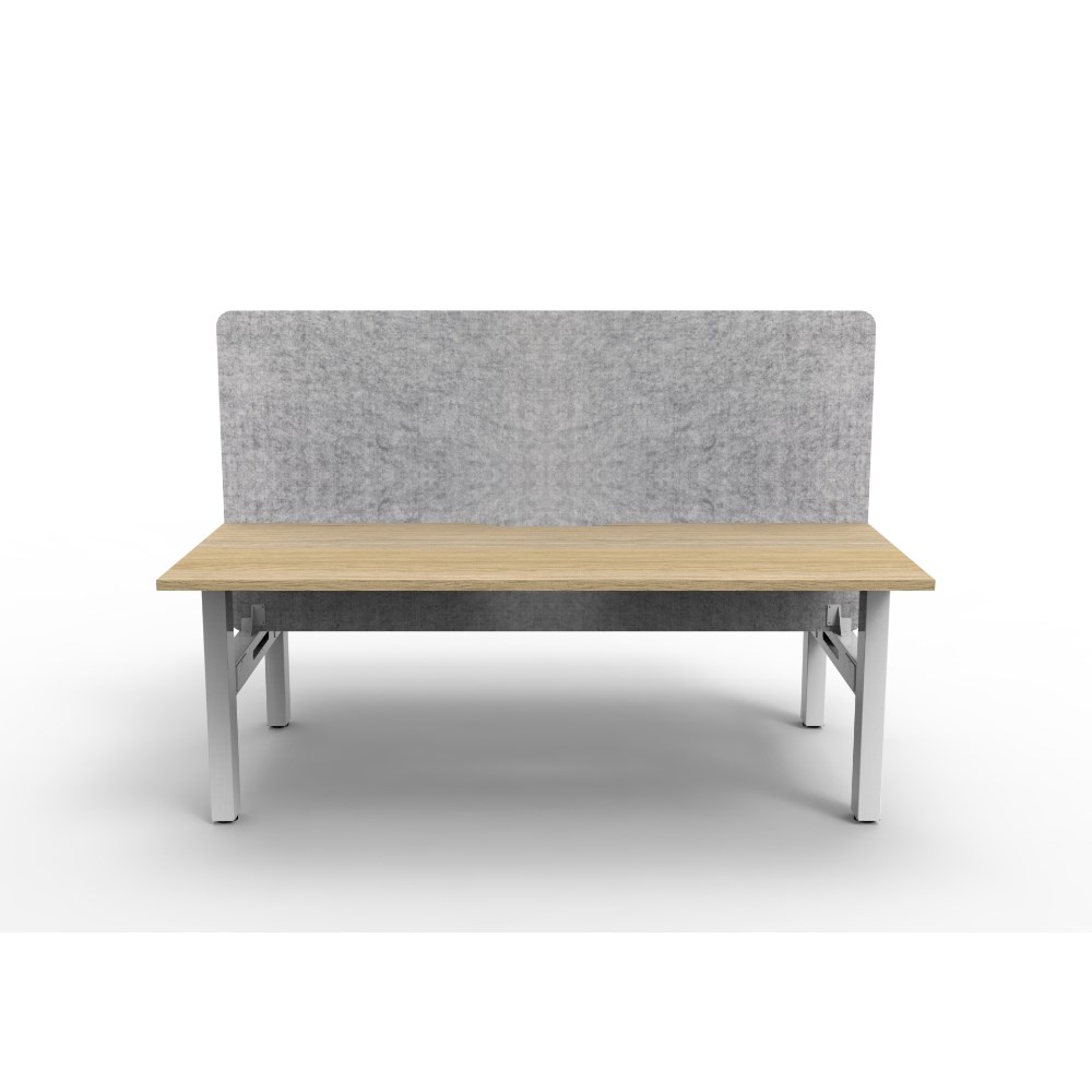 2 person back to back workstation with Natural Oak top and White Satin frame, Grey Eco screen.