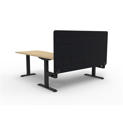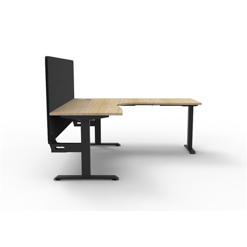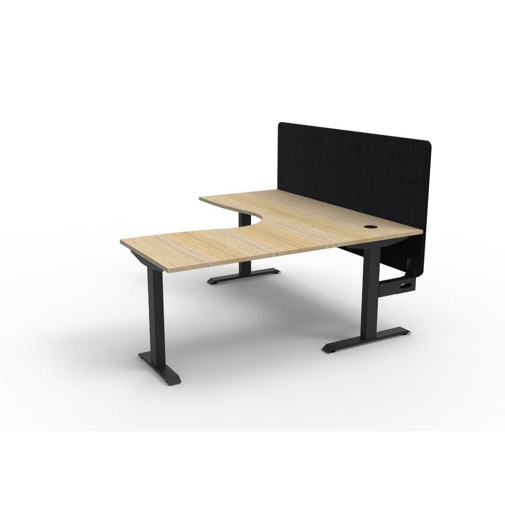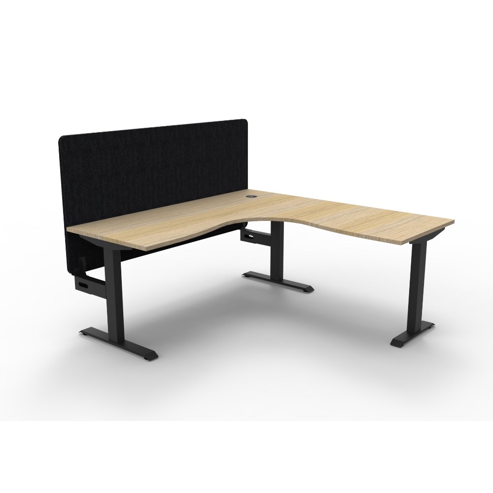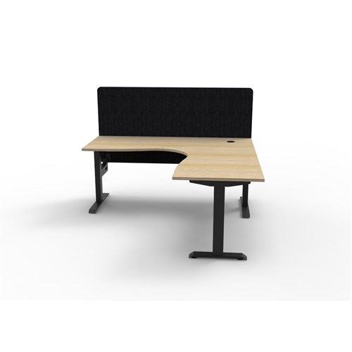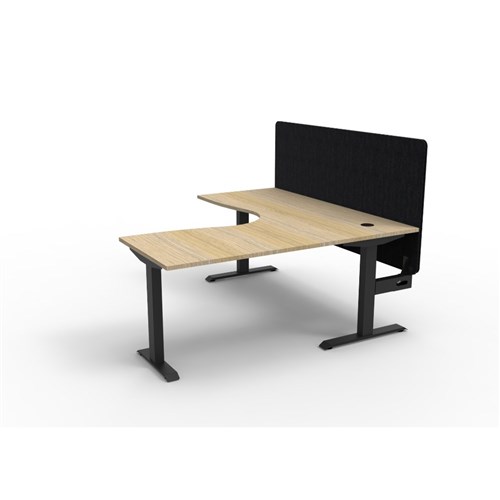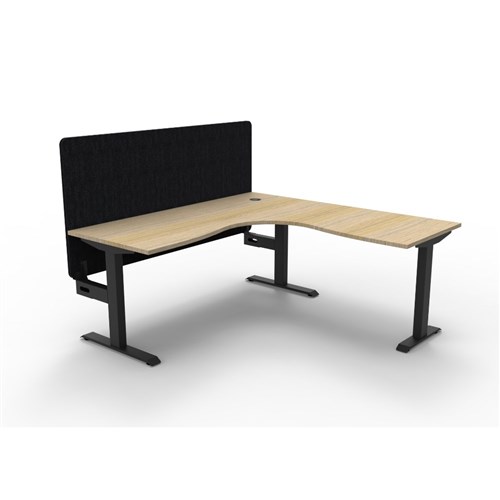 Corner workstation with Natural Oak top and Black Satin frame, Black Eco screen.