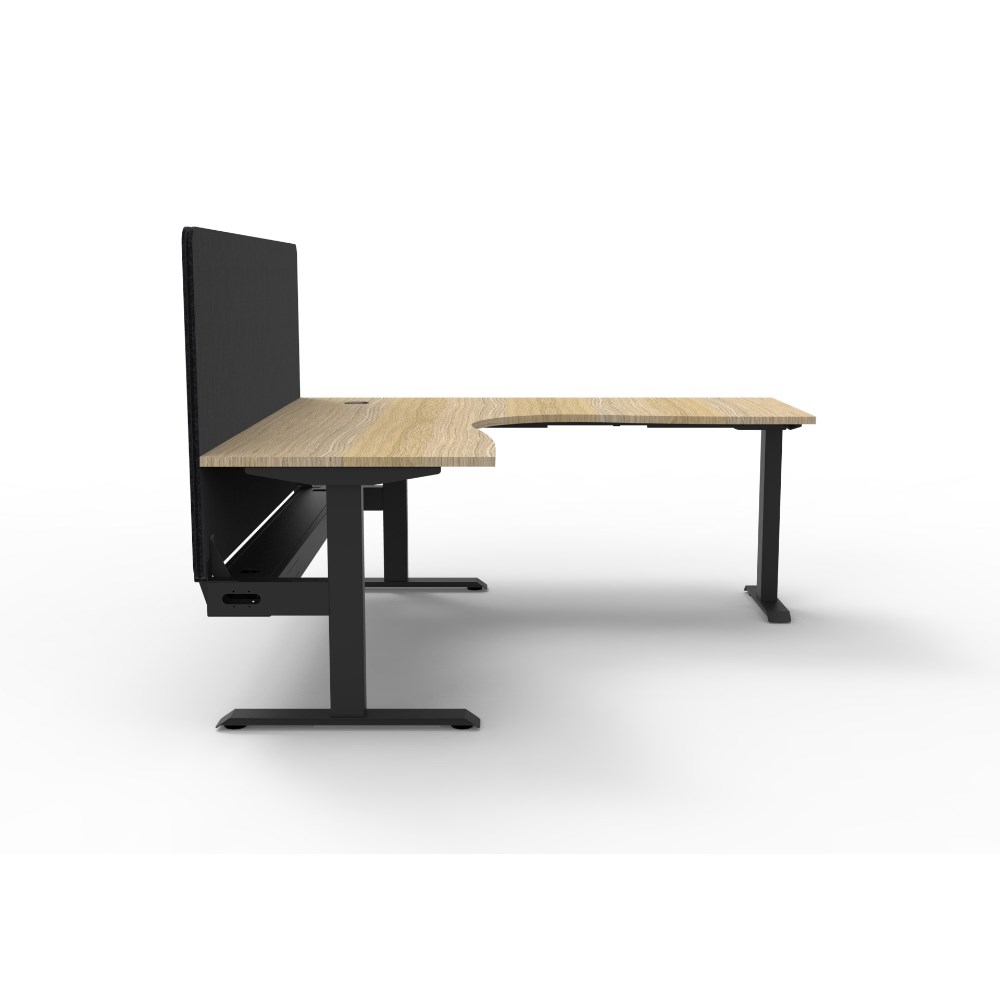 Corner workstation with Natural Oak top and Black Satin frame, Black Eco screen and cable tray.