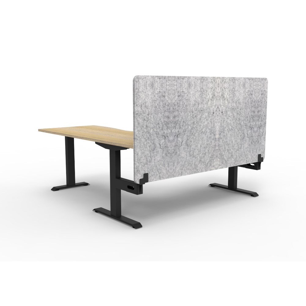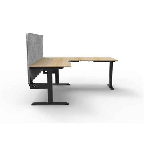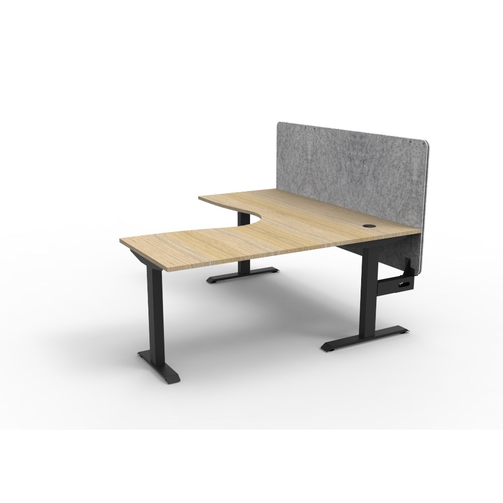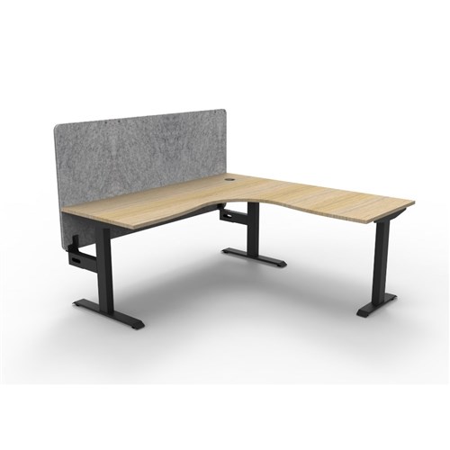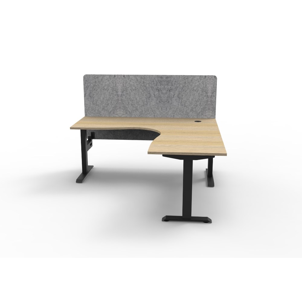 Corner workstation with Natural Oak top and Black Satin frame, Grey Eco screen.