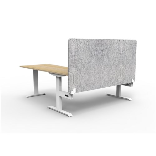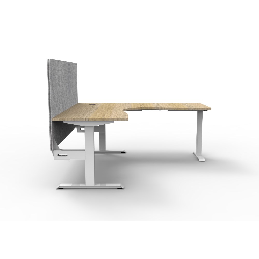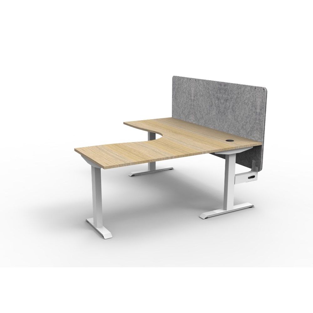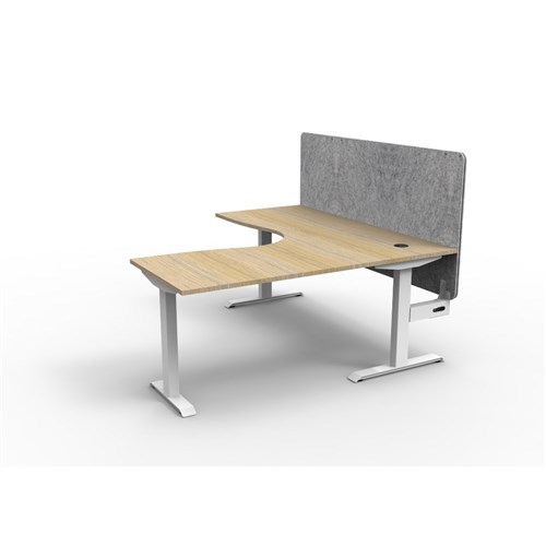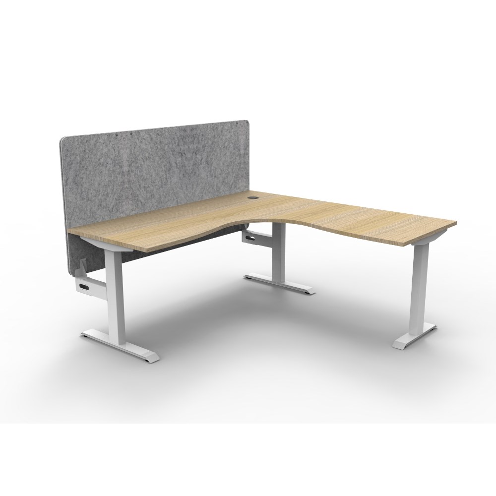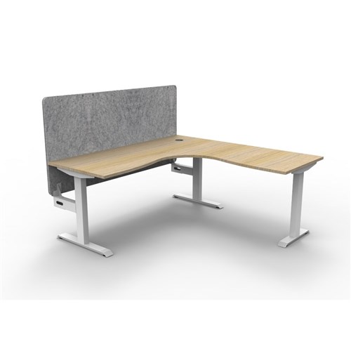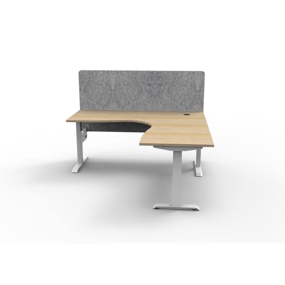 Corner workstation with Natural Oak top and White Satin frame, Grey Eco screen.