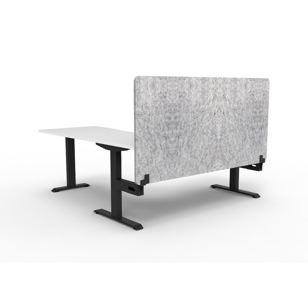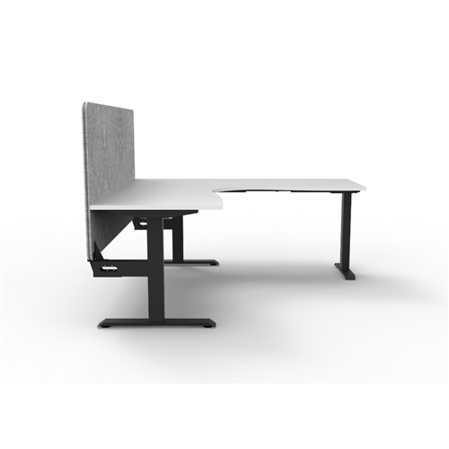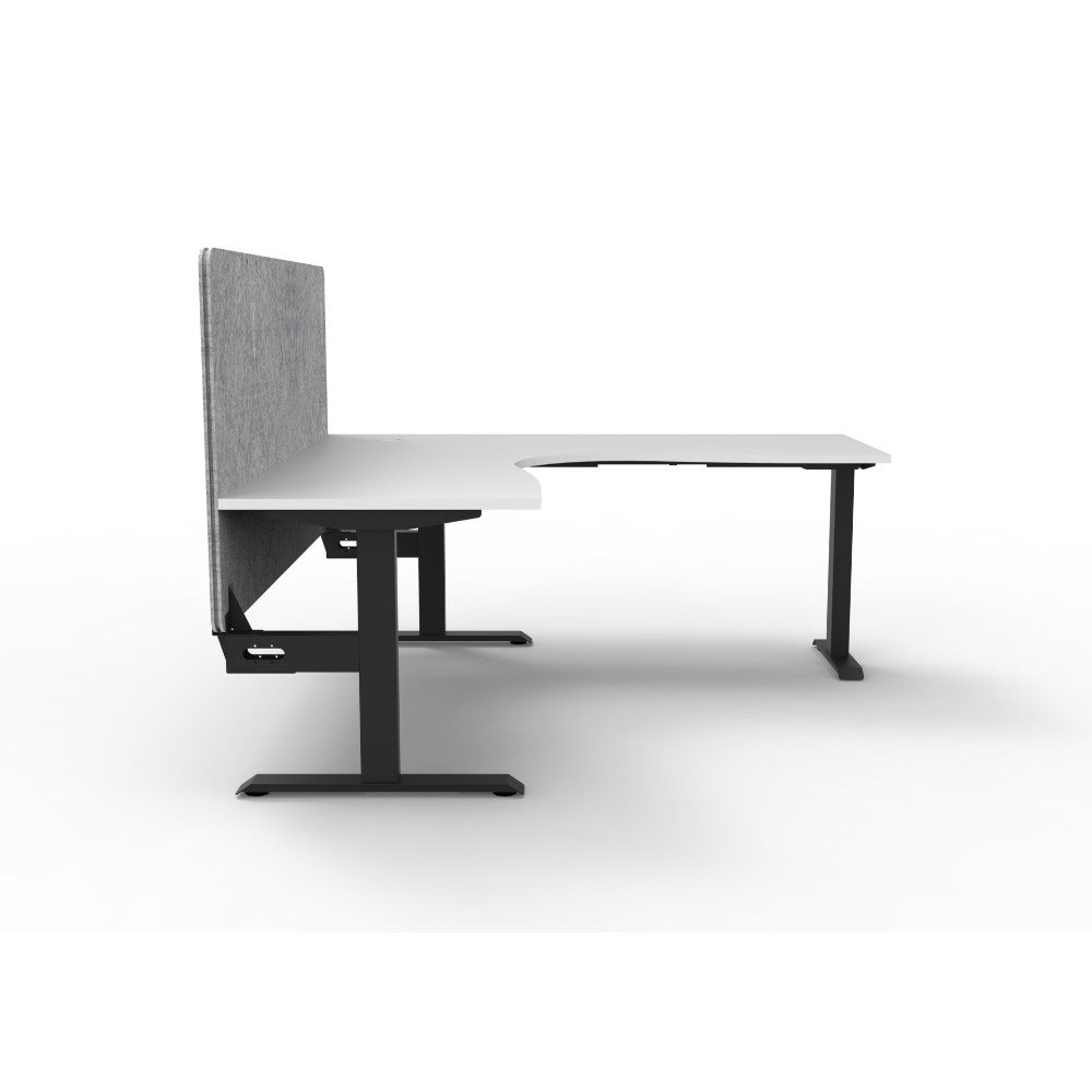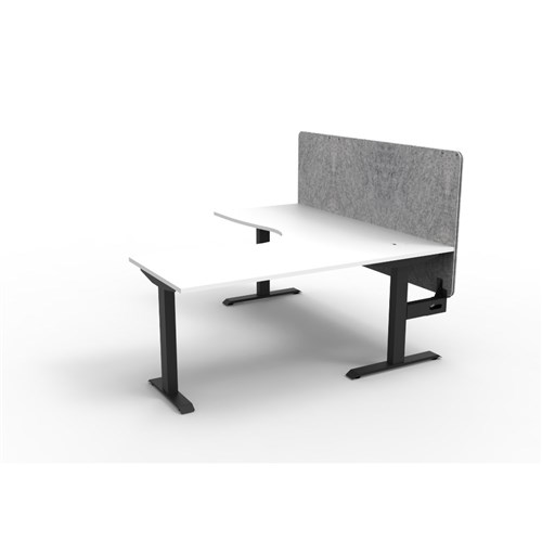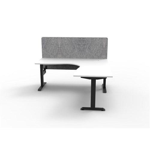 Corner workstation with White top and Black Satin frame, Grey Eco screen.