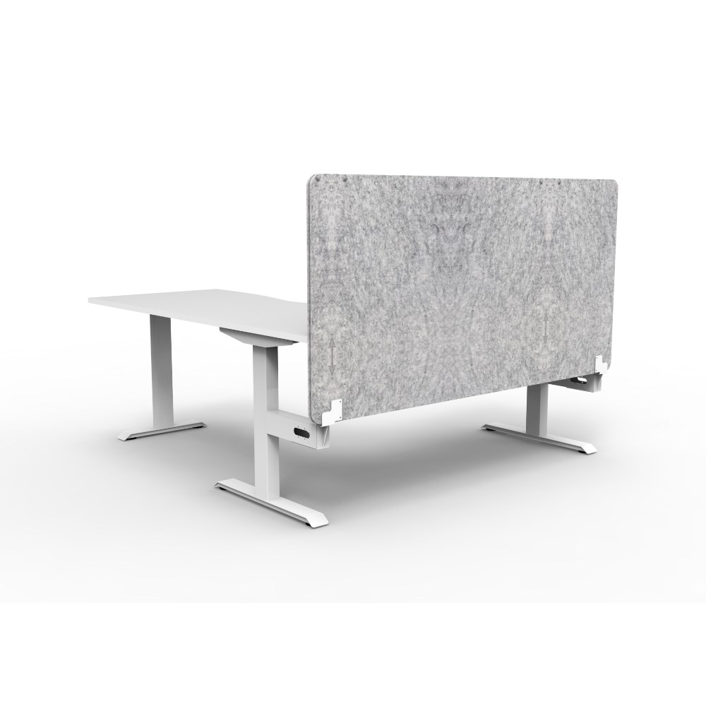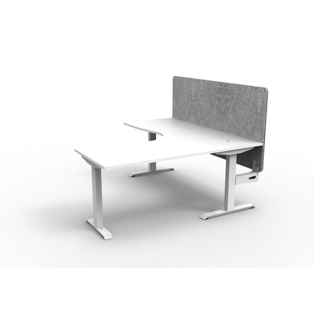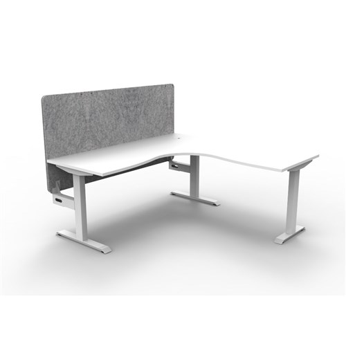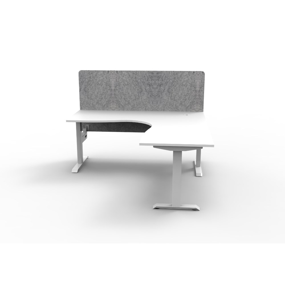 Corner workstation with White top and White Satin frame, Grey Eco screen.