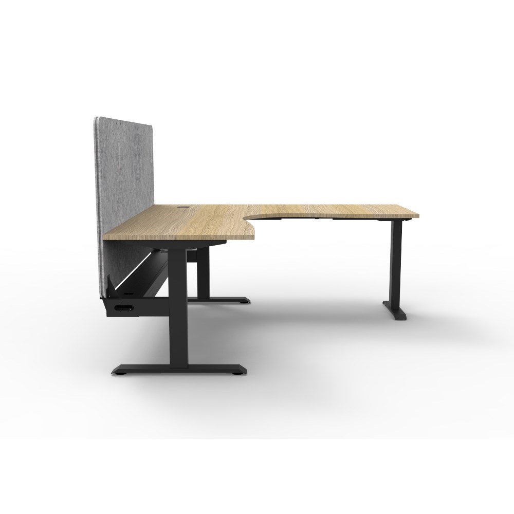 Corner workstation with Natural Oak top and Black Satin frame, Grey Eco screen and cable tray.