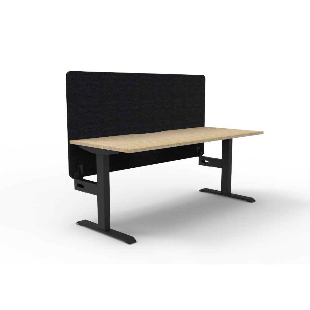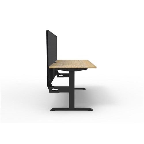 Single sided workstation with Natural Oak top and Black Satin frame and Black Eco screen.