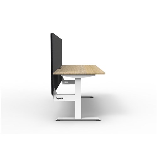 Single sided workstation with Natural Oak top and White Satin frame and Black Eco screen.