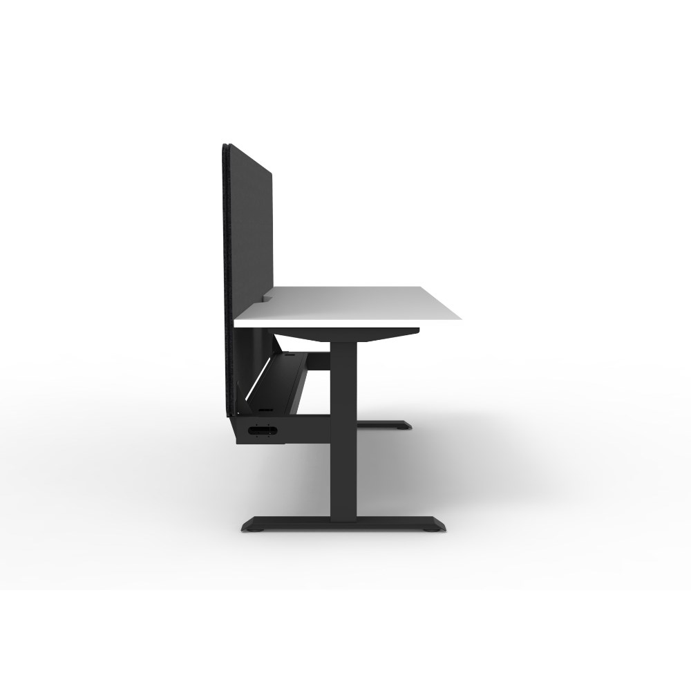 Single sided workstation with White top and Black Satin frame, Black Eco screen and cable tray.