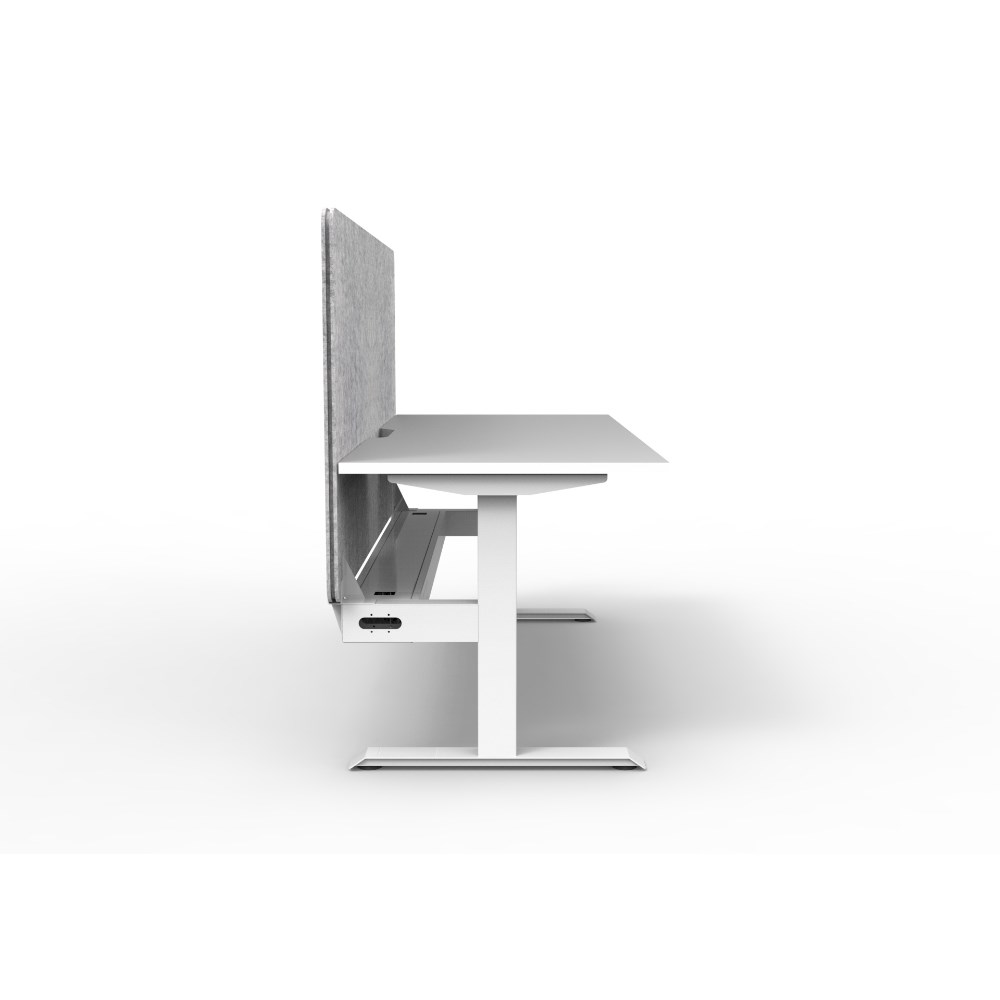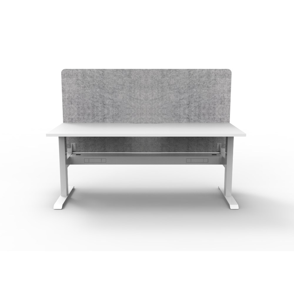 Single sided workstation with White top and White Satin frame, Grey Eco screen and cable tray.