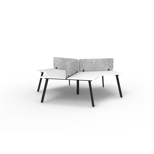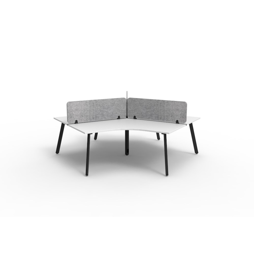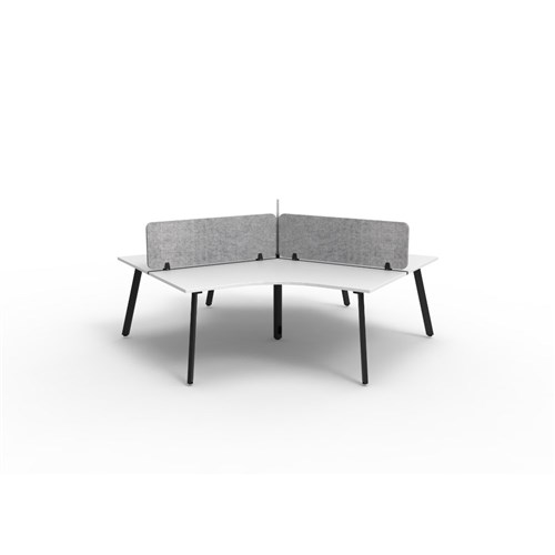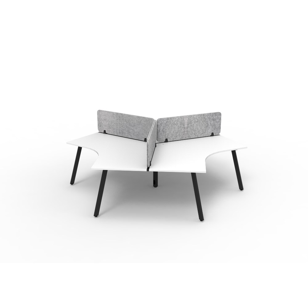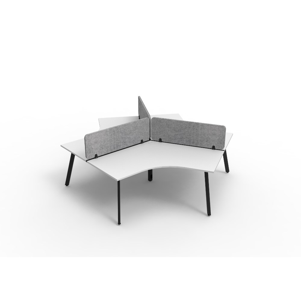 3 person 120 degree workstation with Natural White top and Black Satin frame, Grey Eco screen.