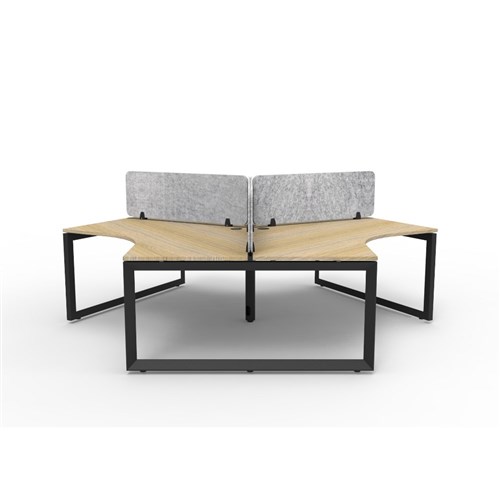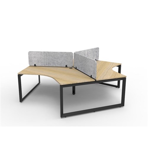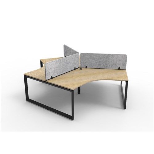 3 person 120 degree workstation with Natural Oak top and Black Satin frame, Grey Eco screen.