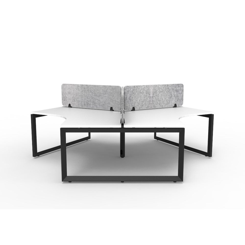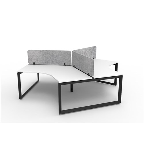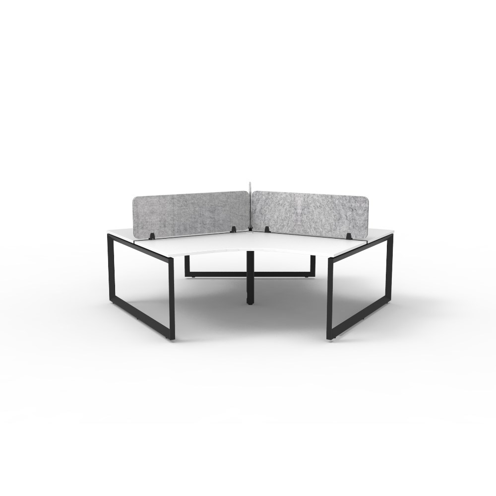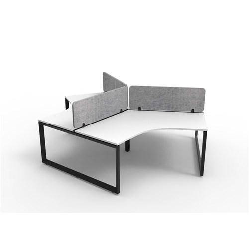 3 person 120 degree workstation with White top and Black Satin frame, Grey Eco screen.