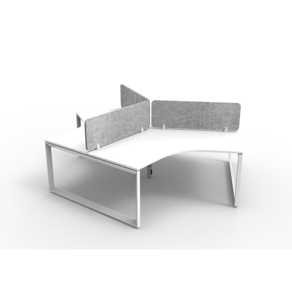 3 person 120 degree workstation with White top and White Satin frame, Grey Eco screen.