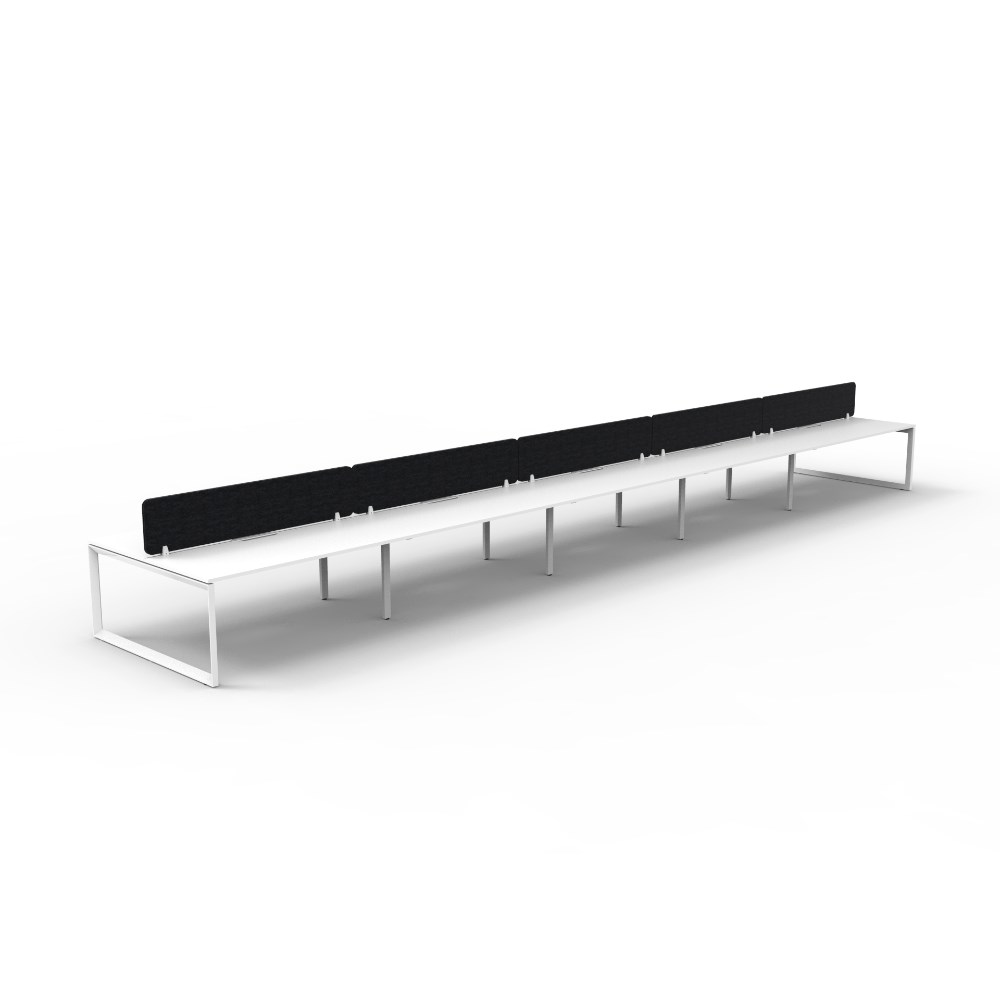 10 person double sided workstation with White top and White Satin frame, Black Eco screen.