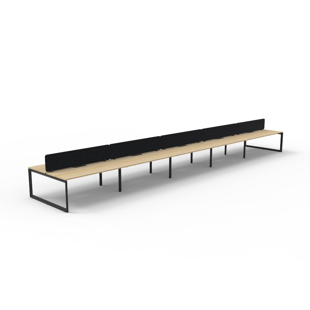10 person double sided workstation with Natural Oak top and Black Satin frame, Black Eco screen.