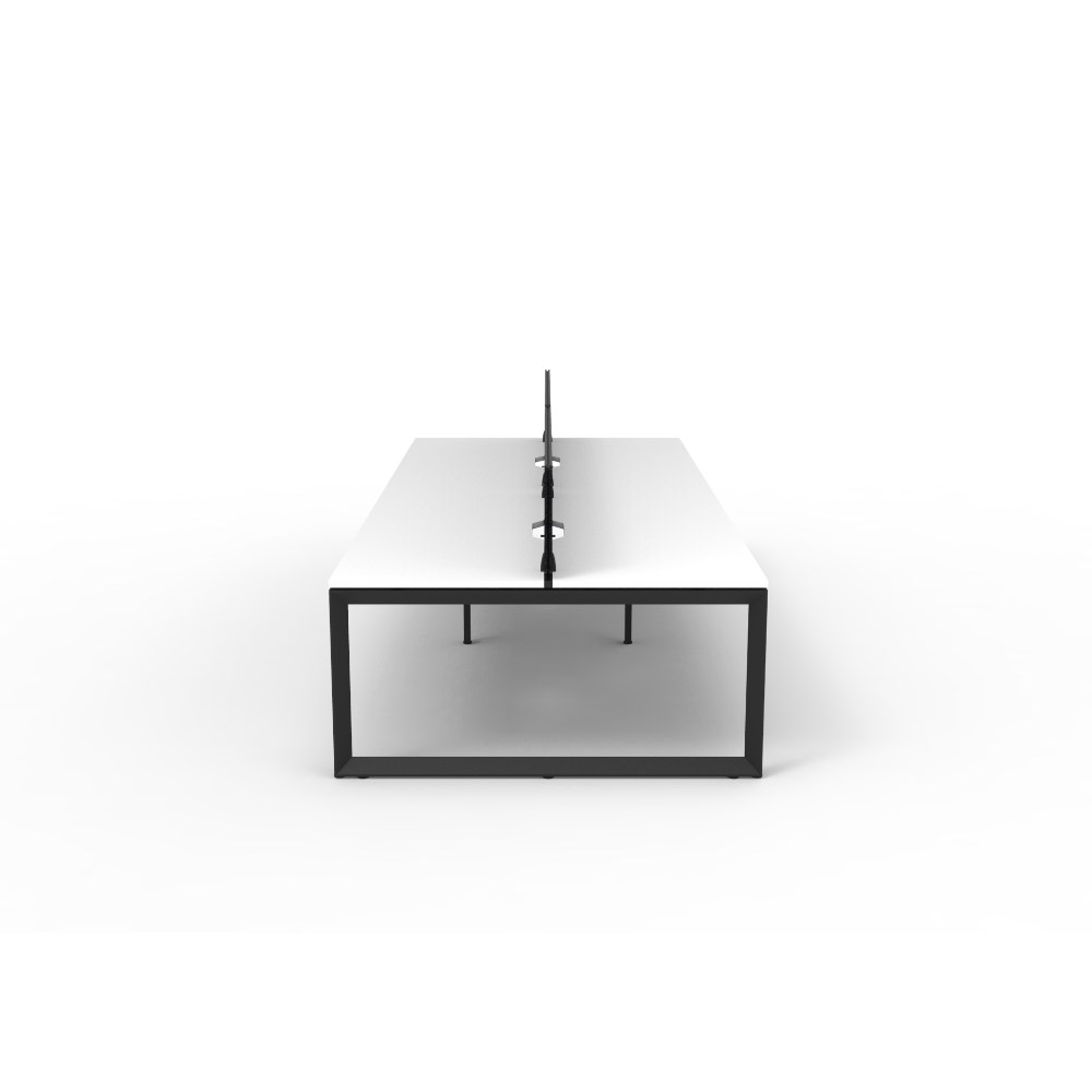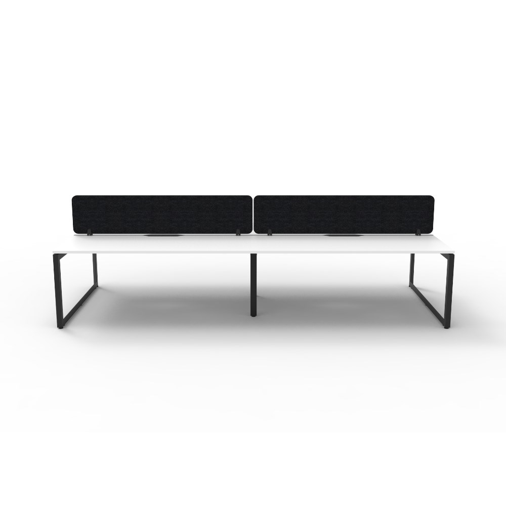 4 person double sided workstation with White top and Black Satin frame, Black Eco screen.