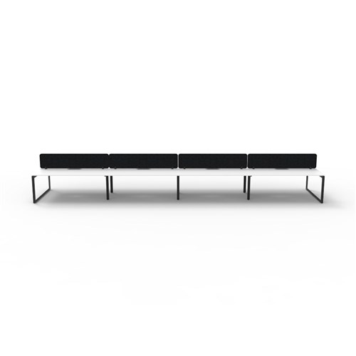 8 person double sided workstation with White top and Black Satin frame, Black Eco screen.