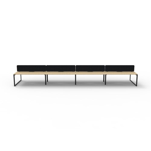 8 person double sided workstation with Natural Oak top and Black Satin frame, Black Eco screen.