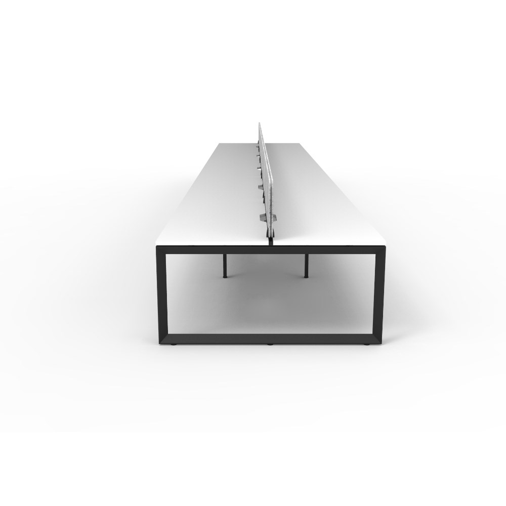 10 person double sided workstation with White top and Black Satin frame, Grey Eco screen.