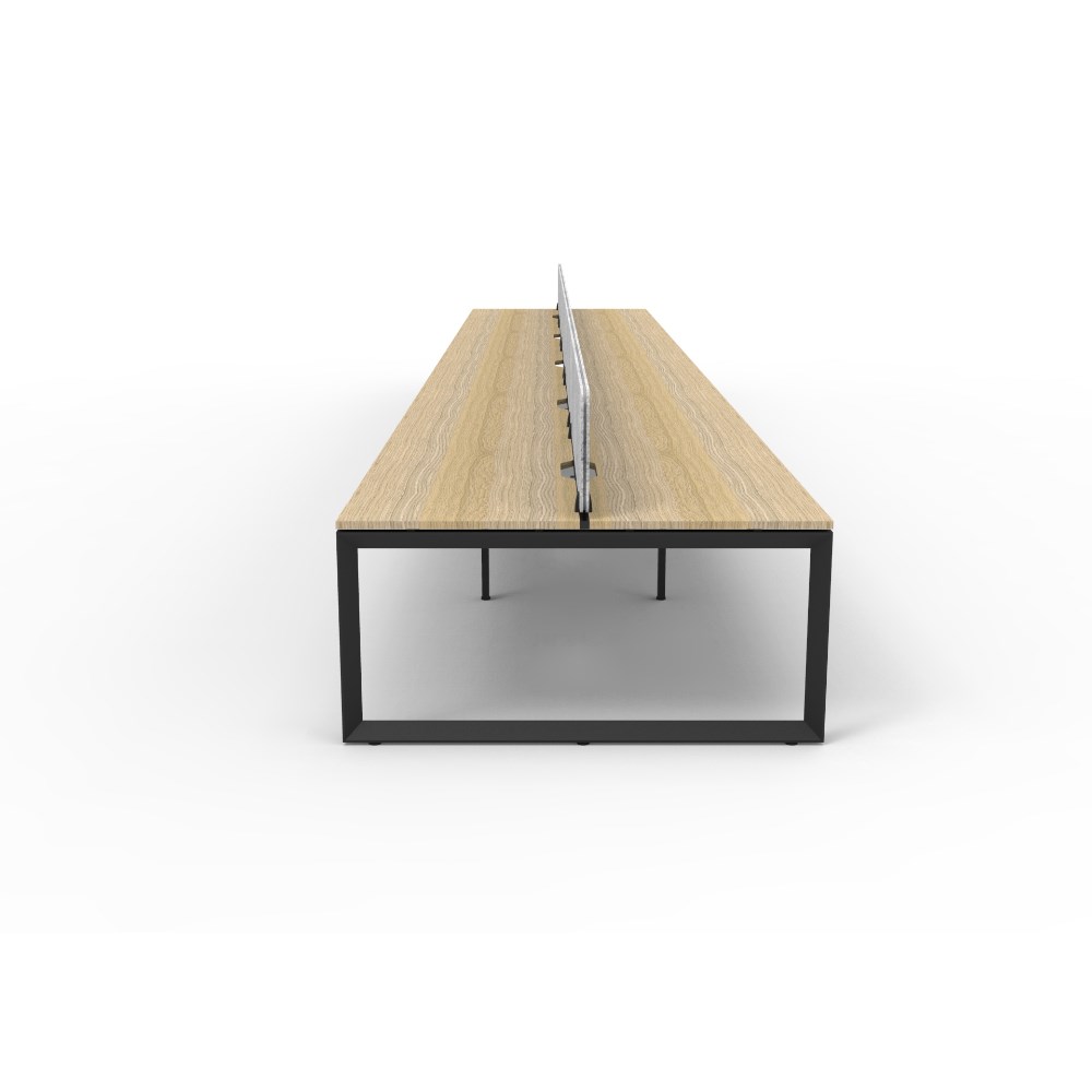 10 person double sided workstation with Natural Oak top and Black Satin frame, Grey Eco screen.