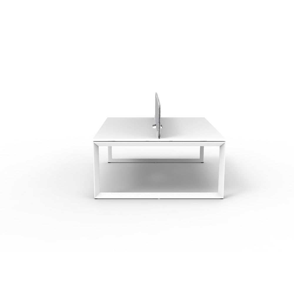 2 person double sided workstation with White top and White Satin frame, Grey Eco screen.