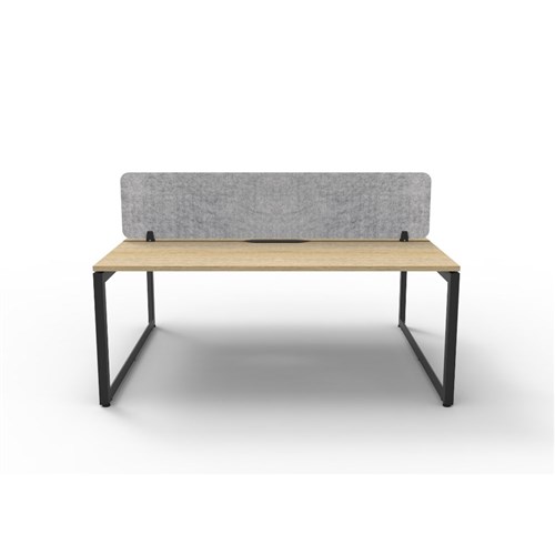 2 person double sided workstation with Natural Oak top and Black Satin frame, Grey Eco screen.