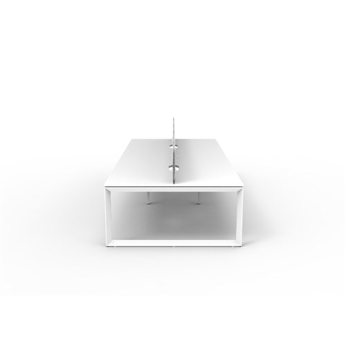 4 person double sided workstation with White top and White Satin frame, Grey Eco screen.