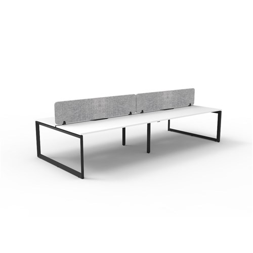 4 person double sided workstation with White top and Black Satin frame, Grey Eco screen.