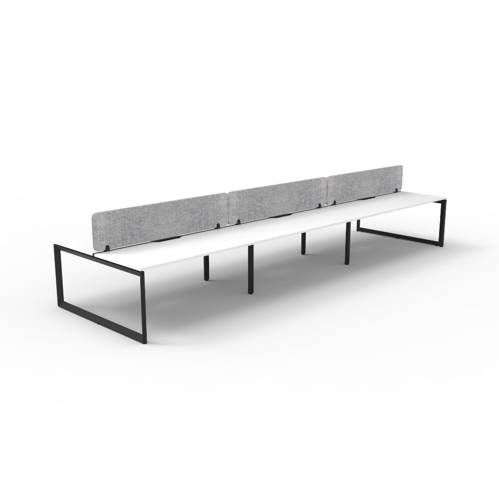 6 person double sided workstation with White top and Black Satin frame, Grey Eco screen.