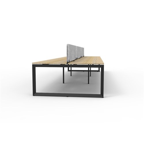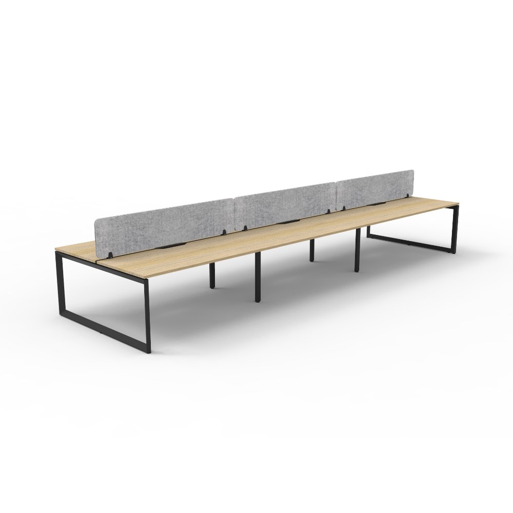 6 person double sided workstation with Natural Oak top and Black Satin frame, Grey Eco screen.