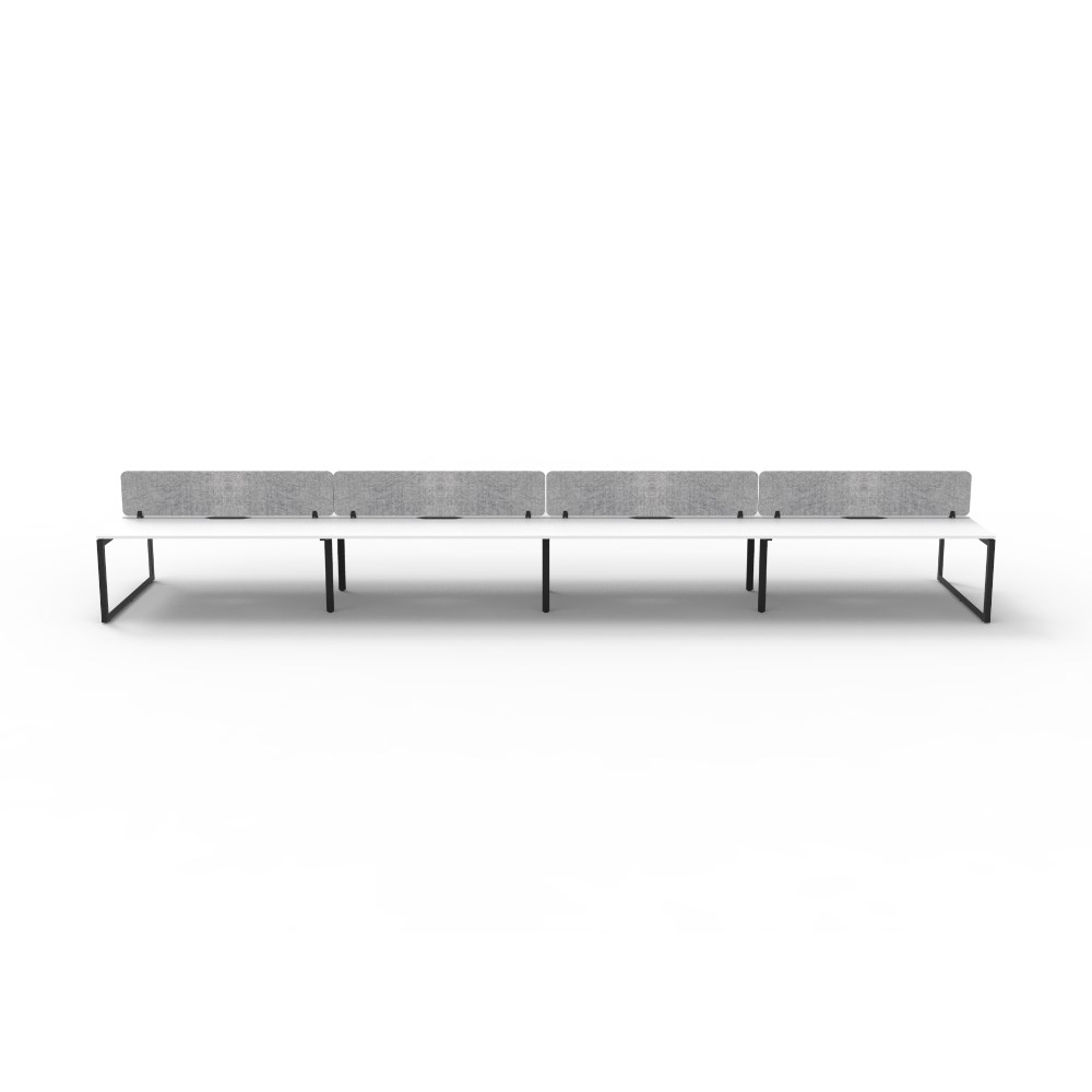 8 person double sided workstation with White top and Black Satin frame, Grey Eco screen.