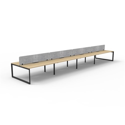 8 person double sided workstation with Natural Oak top and Black Satin frame, Grey Eco screen.