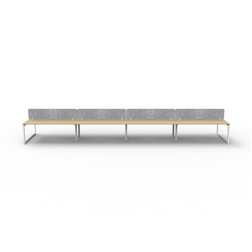 8 person double sided workstation with Natural Oak top and White Satin frame, Grey Eco screen.