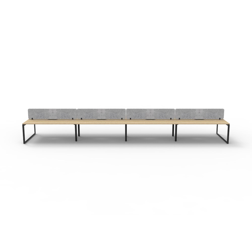 8 person double sided workstation with Natural Oak top and Black Satin frame, Grey Eco screen.