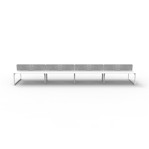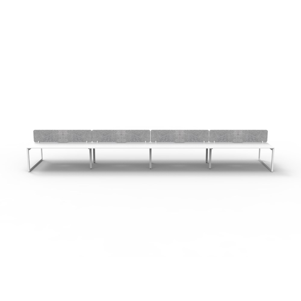 8 person double sided workstation with White top and White Satin frame, Grey Eco screen.