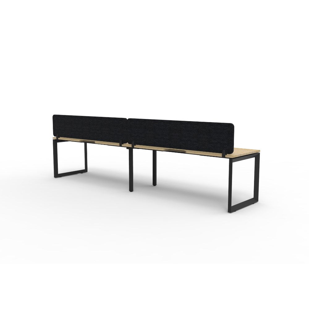 2 person single sided workstation with Natural Oak top and Black Satin frame, Black Eco screen.