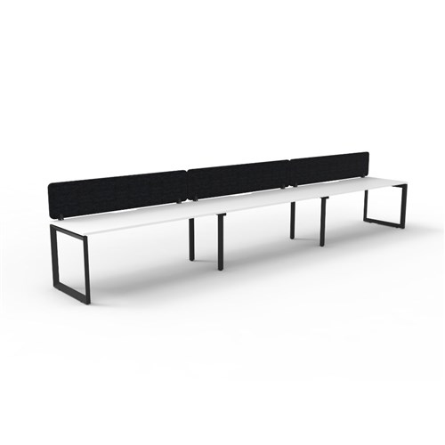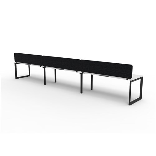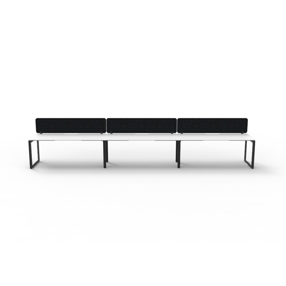 3 person single sided workstation with White top and Black Satin frame, Black Eco screen.