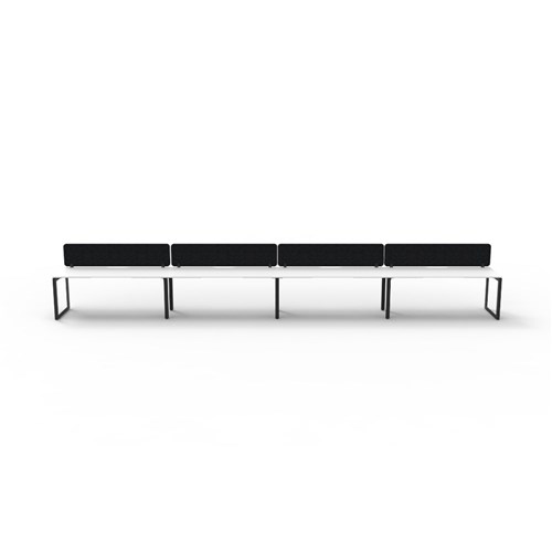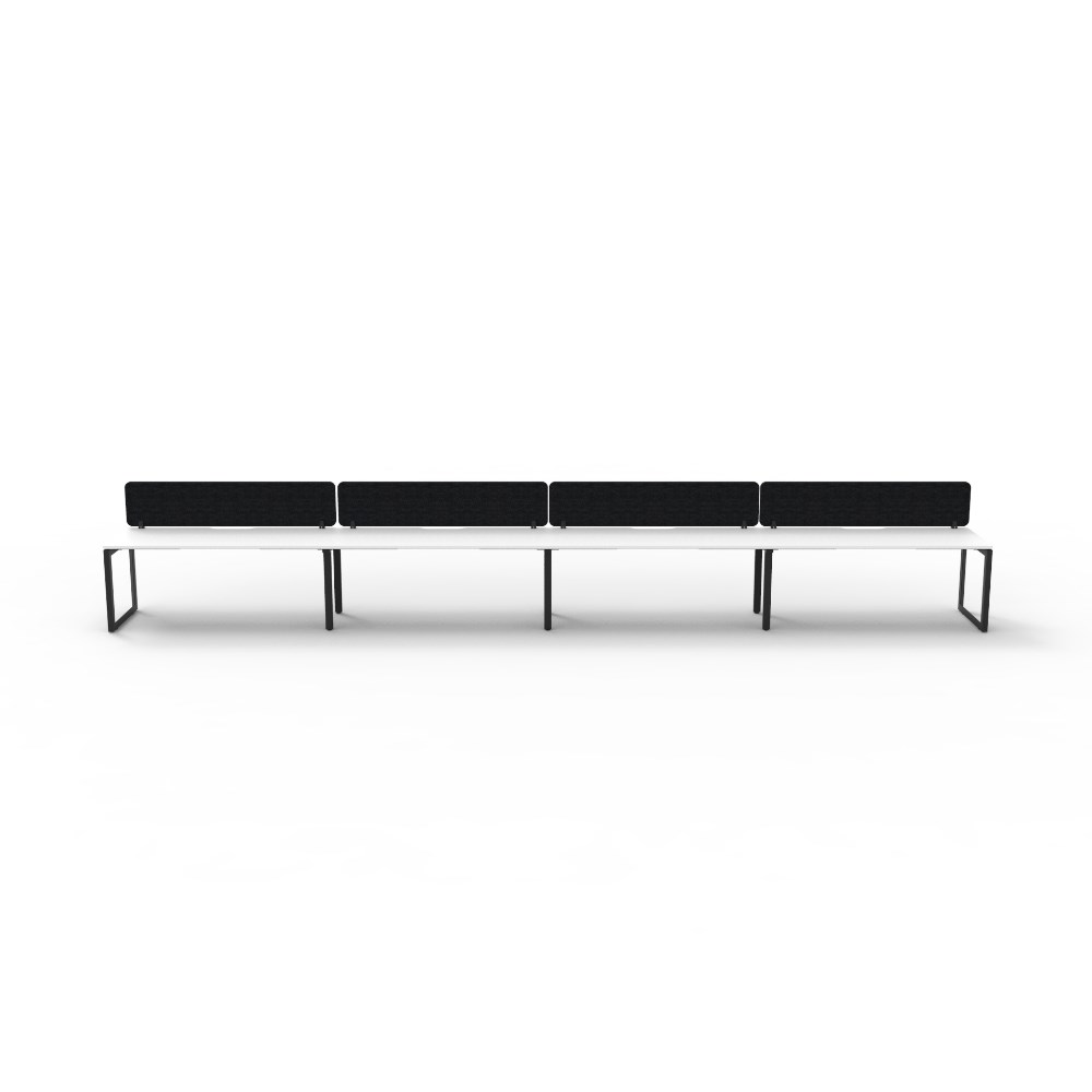 4 person single sided workstation with White top and Black Satin frame, Black Eco screen.