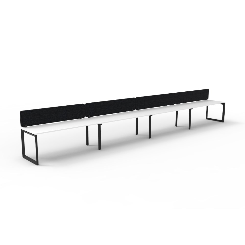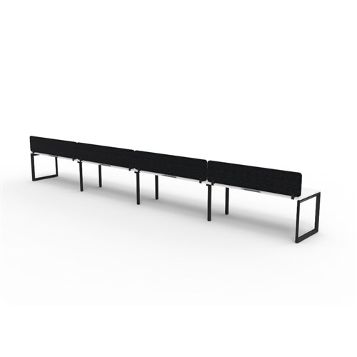 4 person single sided workstation with White top and Black Satin frame, Black Eco screen.