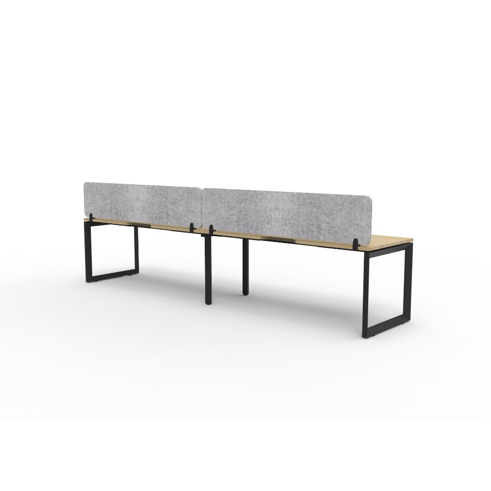 2 person single sided workstation with Natural Oak top and Black Satin frame, Grey Eco screen.