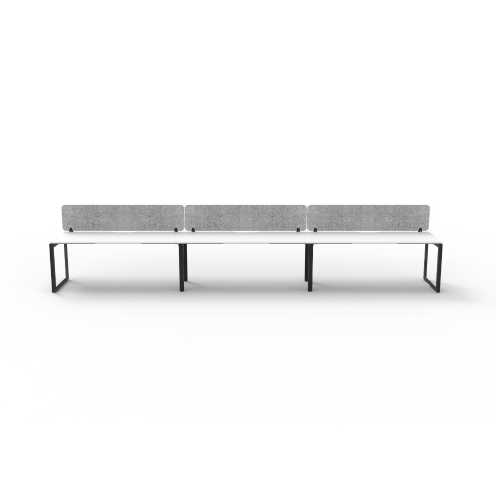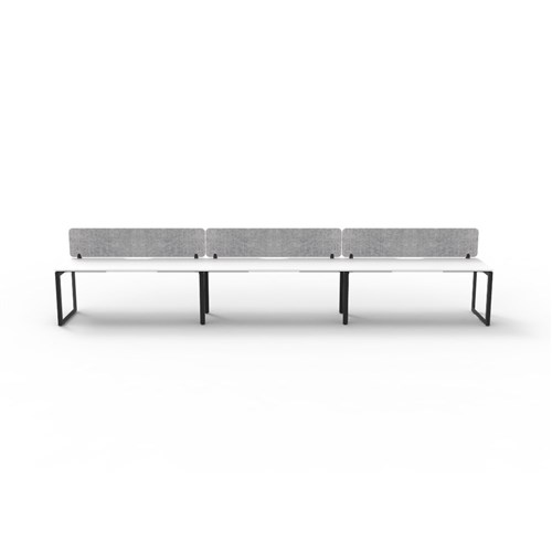 3 person single sided workstation with White top and Black Satin frame, Grey Eco screen.
