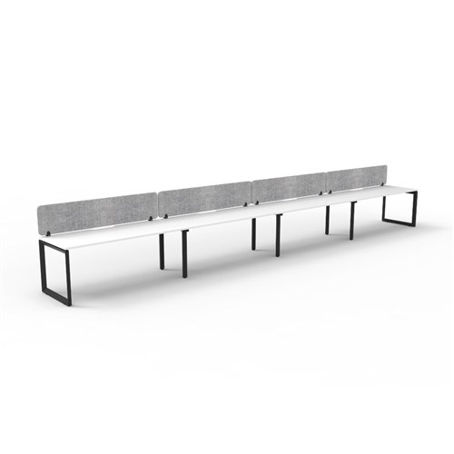 4 person single sided workstation with White top and Black Satin frame, Grey Eco screen.