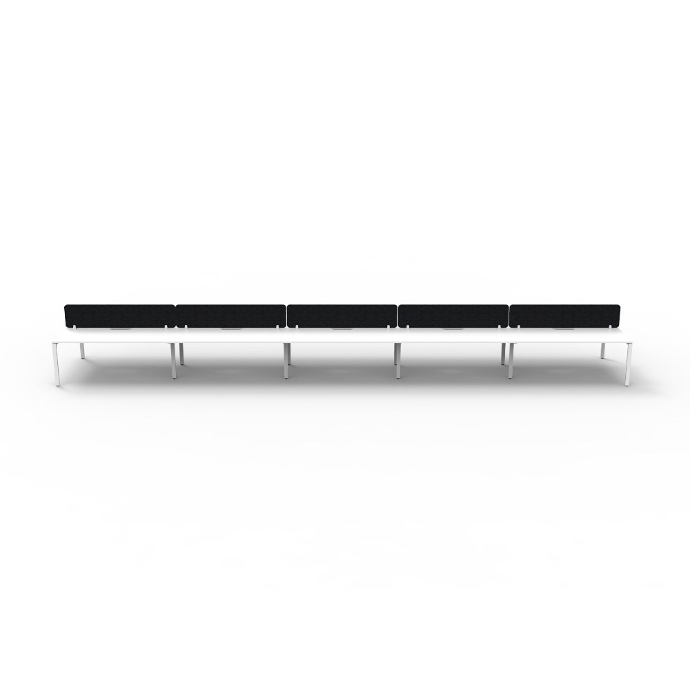 10 person double sided workstation with White top and White Satin frame, Black Eco screen.