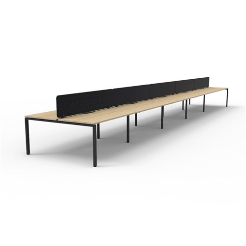 10 person double sided workstation with Natural Oak top and Black Satin frame, Black Eco screen.