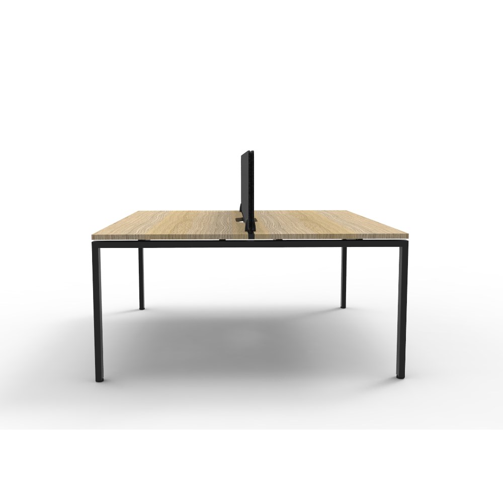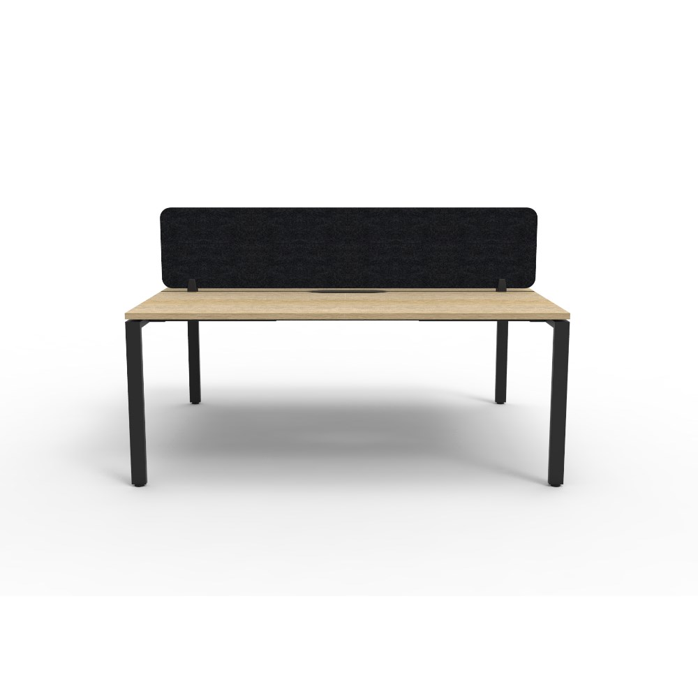 2 person double sided workstation with Natural Oak top and Black Satin frame, Black Eco screen.