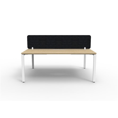 2 person double sided workstation with Natural Oak top and White Satin frame, Black Eco screen.