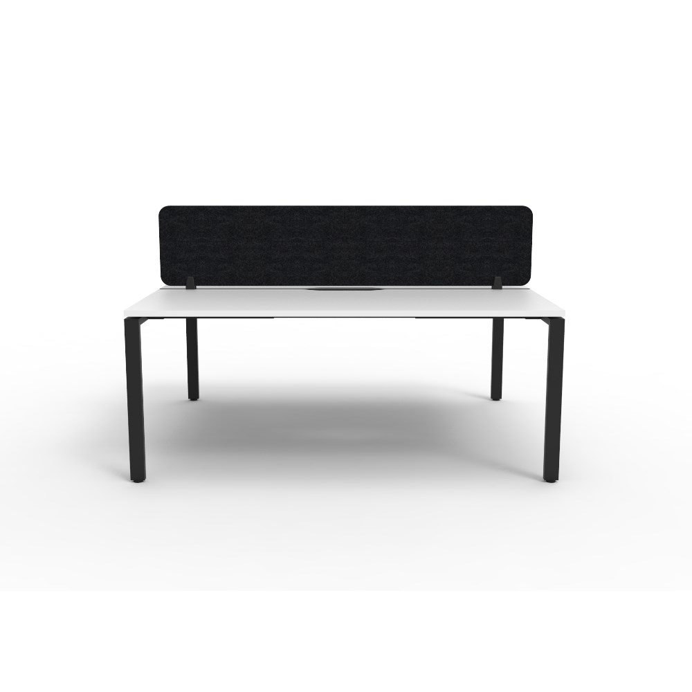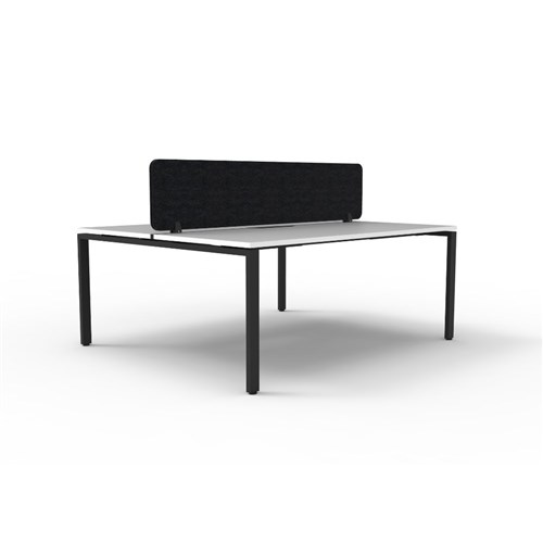 2 person double sided workstation with White top and Black Satin frame, Black Eco screen.