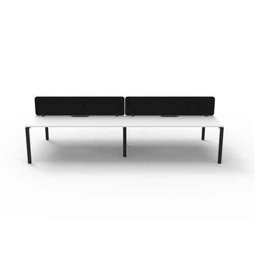 4 person double sided workstation with White top and Black Satin frame, Black Eco screen.