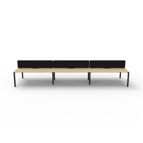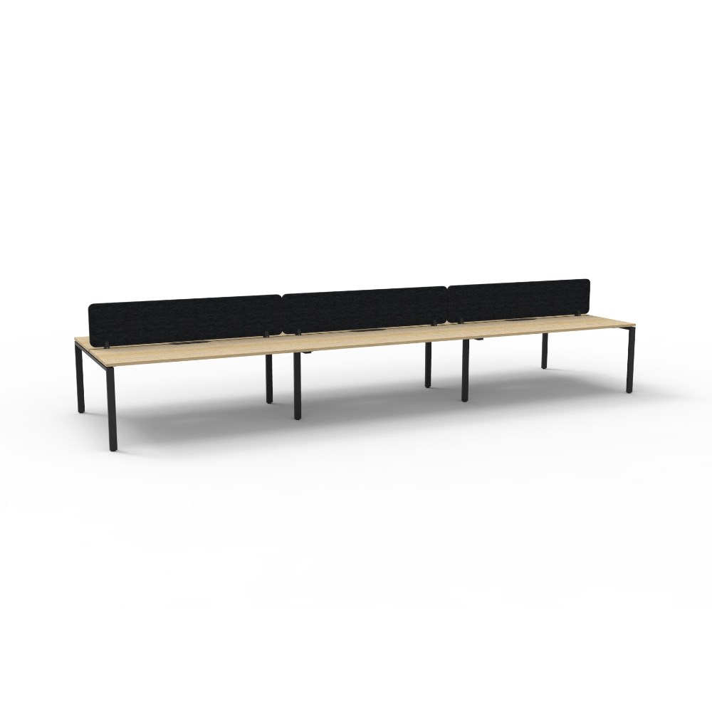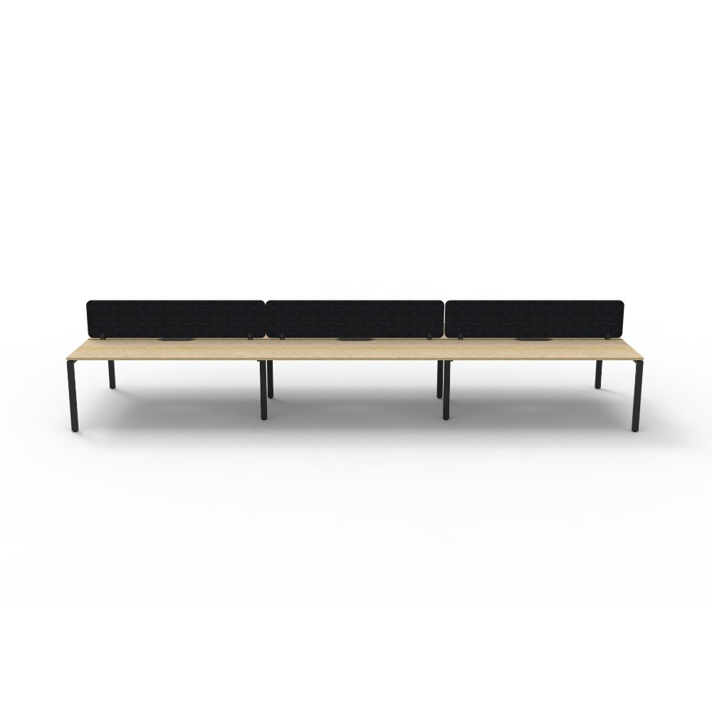 6 person double sided workstation with Natural Oak top and Black Satin frame, Black Eco screen.