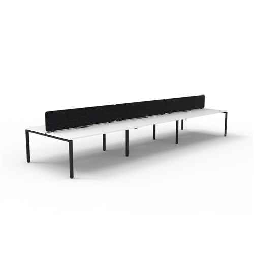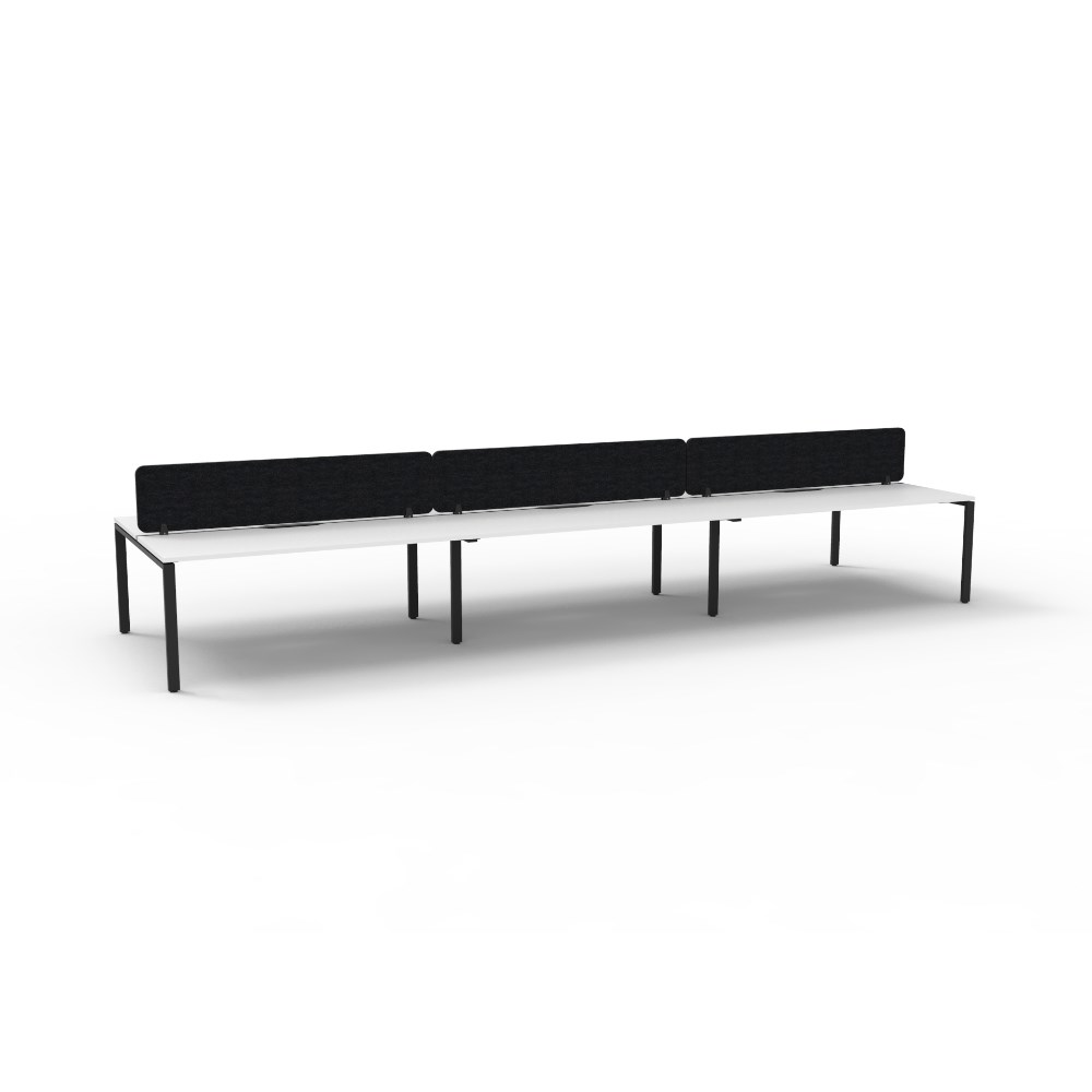 6 person double sided workstation with White top and Black Satin frame, Black Eco screen.
